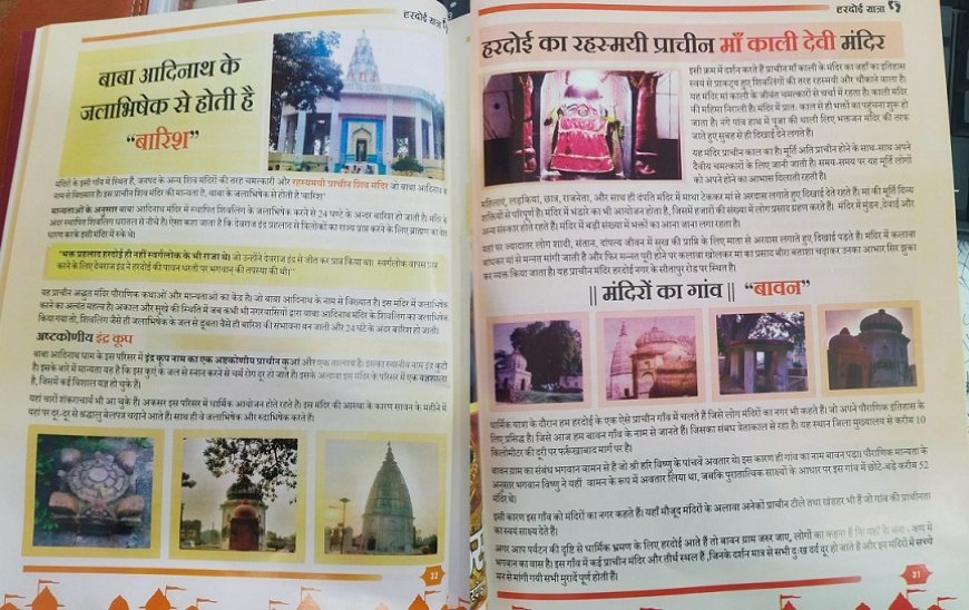 Hardoi News: जनपद के विभिन्न पर्यटन Tourism स्थलों को लेकर बीते वर्ष में ina द्वारा एक एक मैगजीन पर्यटन Tourism की दृष्टि से 'हरदोई यात्रा' का पहला संस्करण प्रकाशित किया गया था। जिसमे जनपद के विभिन्न दार्शनिक, ऐतिहासिक स्थलों का सचित्र दर्शाया गया था। जिसमे बावन व अन्य भी सभी मंदिरों को विस्तार से दर्शाया गया था। जिसे जनपद में काफी सराहा गया और जिसके परिणाम स्वरूप आई एन ए द्वारा प्रकाशित मैगजीन का पहला प्रयास सफल होता दिखाई दे रहा है।