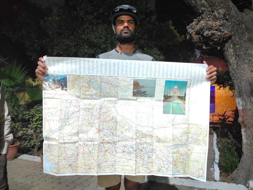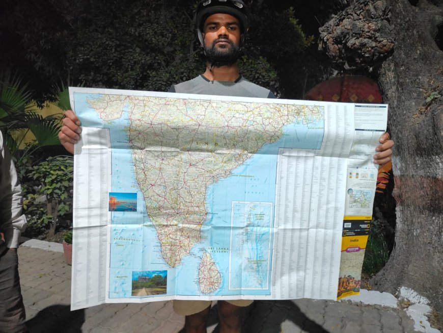 अभिषेक यादव ने हरदोई पहुंचकर अपनी भारत यात्रा को मानचित्र के माध्यम से समझाया
