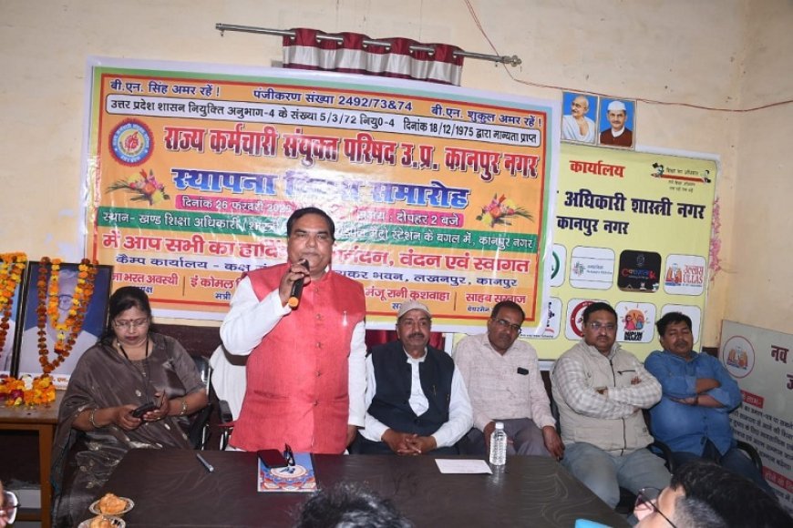Kanpur News: राज्य कर्मचारी संयुक्त परिषद का स्थापना दिवस समारोह खण्ड शिक्षा अधिकारी मोतीझील मेट्रो के पास परिषद के अध्यक्ष राजा भरत अवस्थी की अध्यक्षता में आयोजित किया गया। समारोह का संचालन मन्त्री इं.कोमल सिंह ने किया।