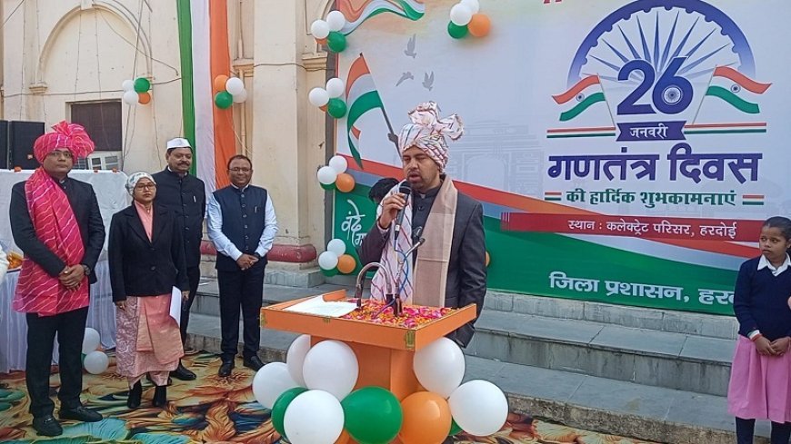 Hardoi: 77वां गणतंत्र दिवस: जिलाधिकारी ने संविधान की महत्ता पर जोर, बच्चों-कर्मचारियों को किया सम्मानित ।