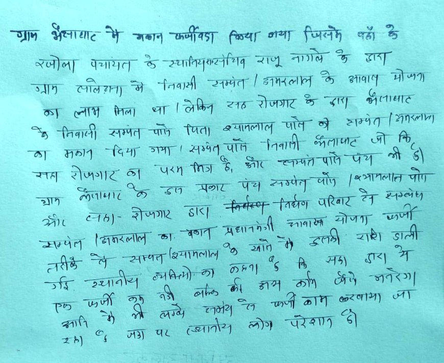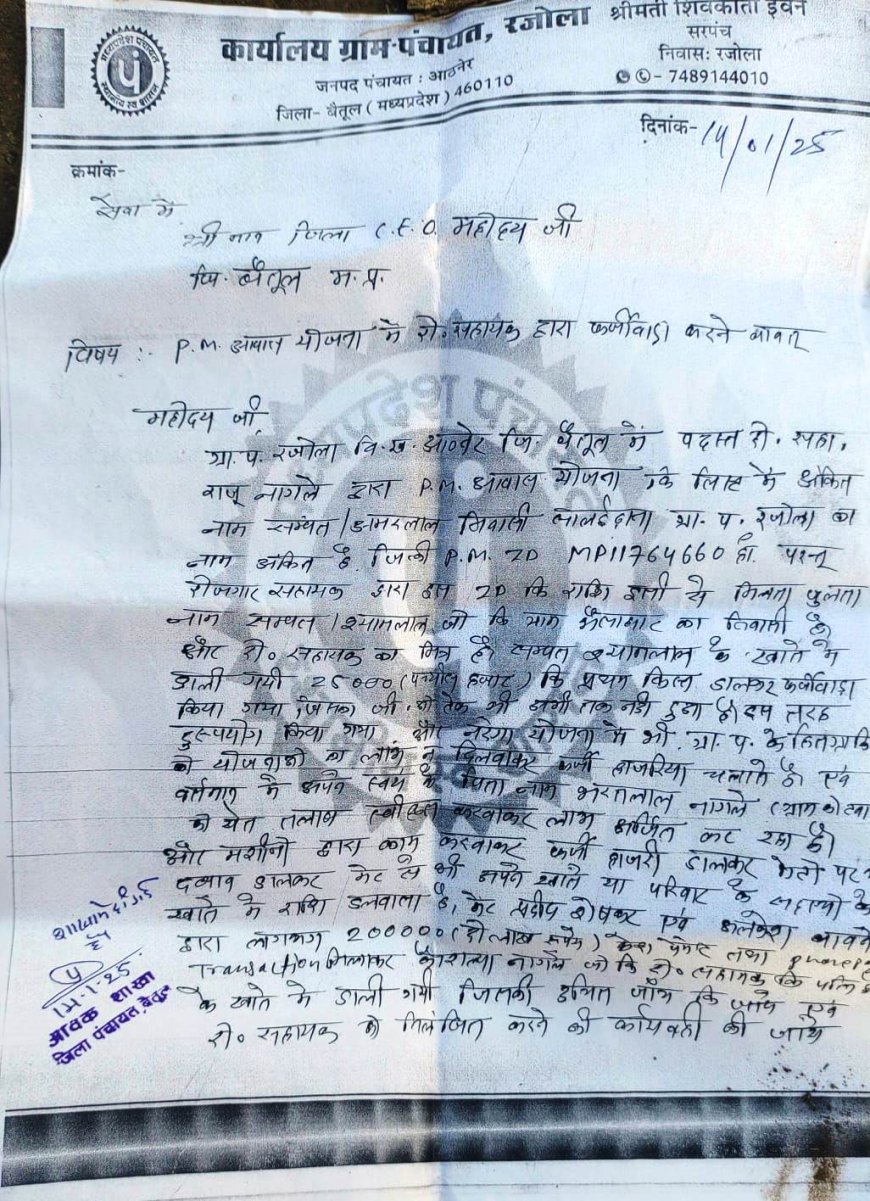 ग्राम पंचायत राजोला में सामने आया जहां हितग्राही का आवास और सहायता राशि दूसरे व्यक्ति को दे दी गई। इस घोटाले की शिकायत कलेक्टर से की गई है। गौरतलब है प्रधान...