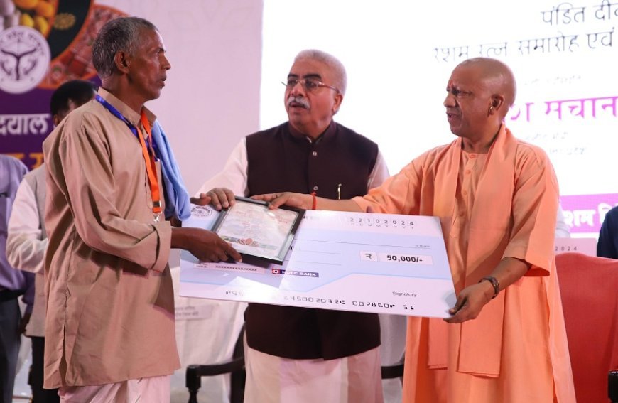 The Chief Minister awarded the Pandit Deendayal Upadhyaya Silk Ratna Award to 16 farmers, entrepreneurs, institutions, and designers. They were honored with the first prize of Rs 50,000 and the second prize of Rs 25,000, along with a memento, and a citation.