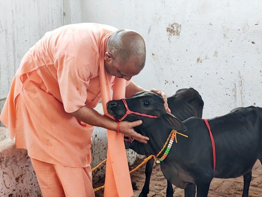In addition to the Punganur cows, CM Yogi spent time with other cows in the temple's cowshed as well. As he made his way around the Gaushala, he lovingly called out to the cows by names like Shyama, Gauri, Ganga, and Bhola. The cows, familiar with his voice, came running towards him.