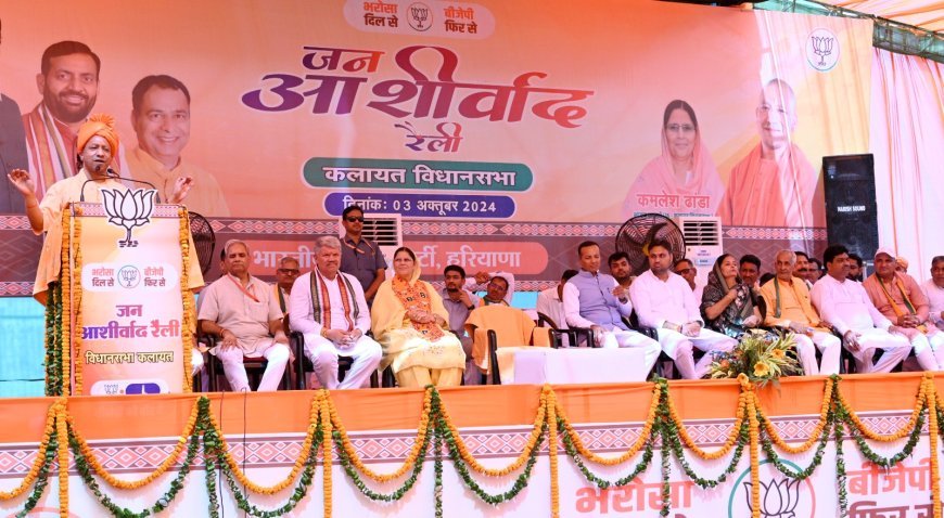 - प्रचार के आखिरी दिन भी हरियाणा के चुनावी रण में उतरे उत्तर प्रदेश के मुख्यमंत्री ने शाहबाद विधानसभा क्षेत्र से भाजपा उम्मीदवार सुभाष कलसाना, कलायत से कमलेश ढांडा और सफीदों से रामकुमार गौतम के लिए मांगा वोट