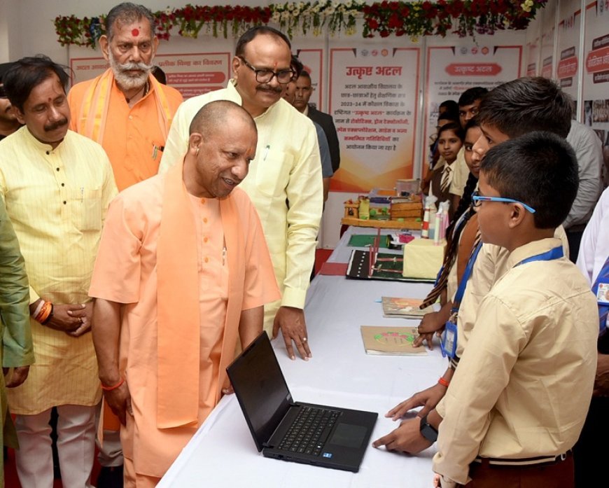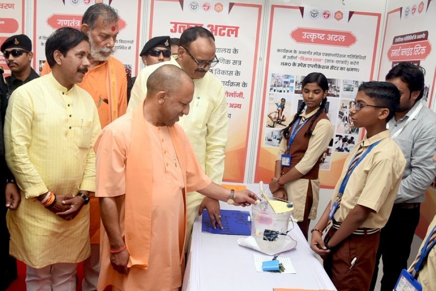 CM Yogi Adityanath began his visit by viewing an exhibition of innovative models created by the students. The exhibition showcased devices such as a smart dustbin, a smart blind stick, an automatic street light, an obstacle-avoiding robot, and various art and craft pieces.