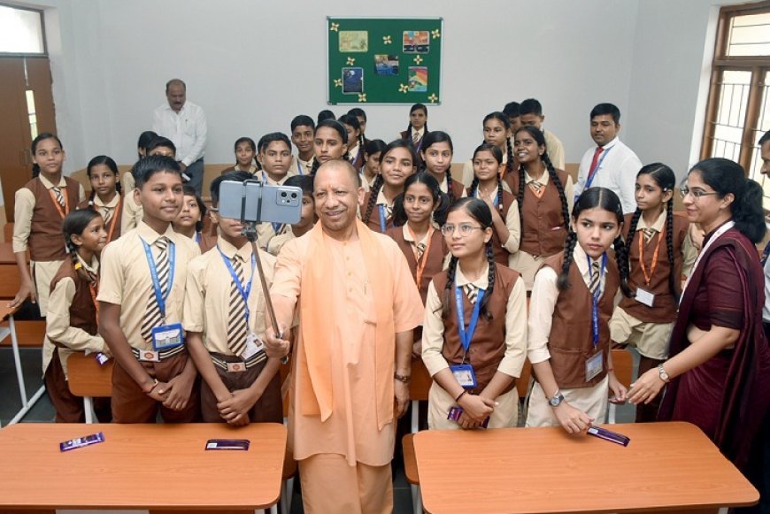 Taking on the role of a teacher, CM Yogi shared success mantras and answered the students' questions. He also took part in a group photoshoot with the students and captured a selfie with them, making the occasion even more memorable for the children.