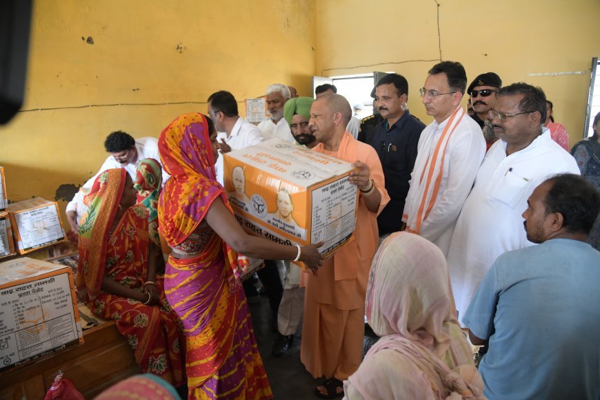 मुख्यमंत्री योगी आदित्यनाथ यहां से कार द्वारा चंदिया हज़ारा बंगाली कालौनी पहुंचे जहां उन्होंने लोगों से बातचीत की, कालौनी के छोटे बच्चों के सिर पर हाथ फेर उनका भी हालचाल पूछा।बाद बाढ़ पीड़ितों से बाढ़ शारणालय में पहुंच कर हालचाल पूछा और स्वयं अपने हाथों से बाढ़ पीड़ितों को राहत सामग्री वितरित करते हरसंभव मदद करने का वादा किया इस मौके पर उनके साथ जल शक्ति मंत्री स्वतंत्र देव सिंह, पीलीभीत के सांसद भारत सरकार के इलैक्ट्रोनिक्स एवं प्रौद्योगिकी राज्य मंत्री जितिन प्रसाद व प्रदेश के गन्ना राज्य मंत्री संजय सिंह गंगवार भी मौजूद रहे।