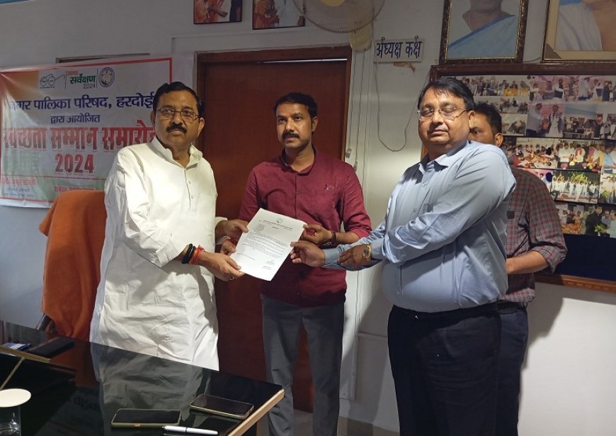 हरदोई न्यूज़: स्वच्छता सम्मान समारोह का आयोजन अध्यक्ष, नगर पालिका परिषद सुख सागर मिश्र मधुर की अध्यक्षता में किया गया।