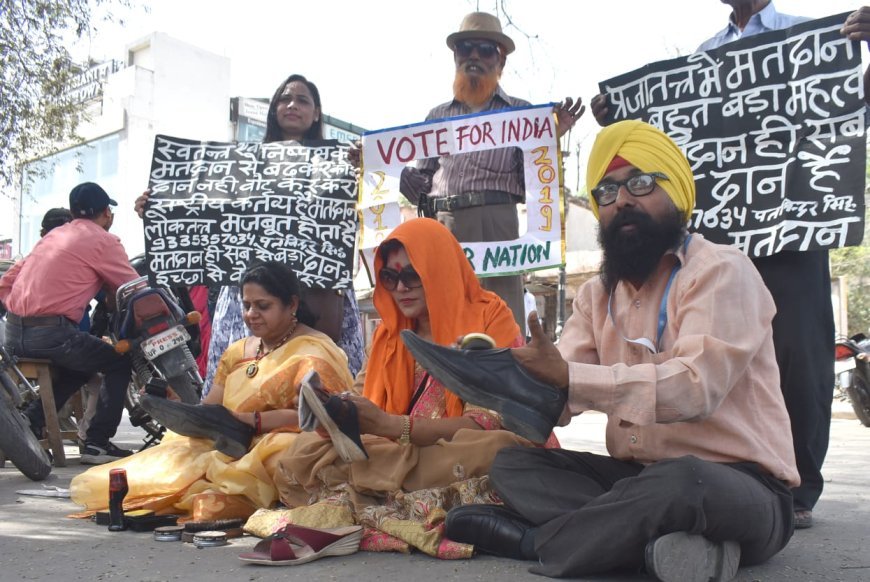 - बूट पॉलिश कर वोटिंग के लिए अवेयर करते सरदार पतविंदर सिंह, 35 वर्षों से सड़क पर लगातार निष्काम सामाजिक जन जागरूकता का कार्य।