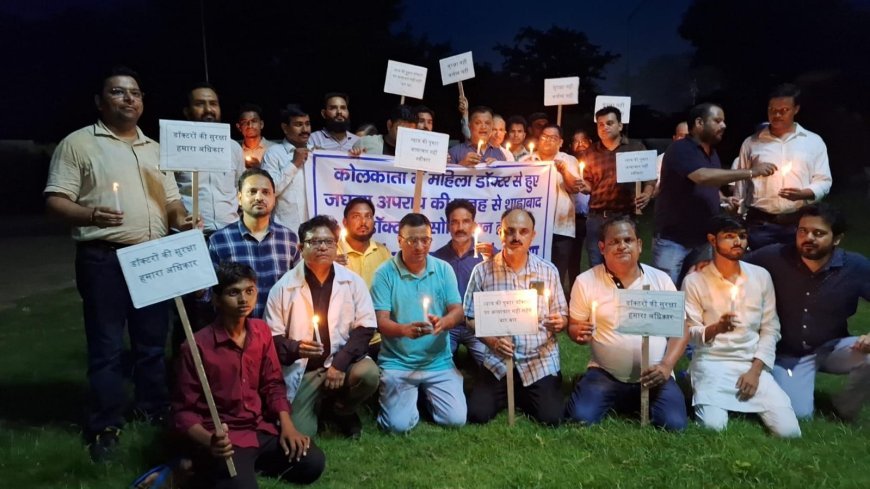 हरदोई। शाहाबाद नगर के समस्त चिकित्सक आरोग्यमेव क्लिनिक मोहल्ला चौक पर एकत्र हुए और मुख्यमार्ग घंटाघर, तिराहा से बसस्टैंड होते हुए बडी फील्ड तक पैदल मार्च किया। डॉक्टर्स पश्चिम बंगाल के कोलकाता में हुए ट्रेनी महिला चिकित्सक की रेप के बाद हत्या के विरोध में मार्च निकाल रहे थे। सभी हाथों में बैनर व तख्तियां थी जिन पर "शौक नहीं मज़बूरी है डॉक्टरों की सुरक्षा ज़रूरी है" "जस्टिस फ़ॉर कोलकाता" आदि लिखा था। सभी की ओपीडी भी बंद रहीं। सभी चिकित्सकों ने बड़ी फील्ड में श्रद्धांजलि सभा की।