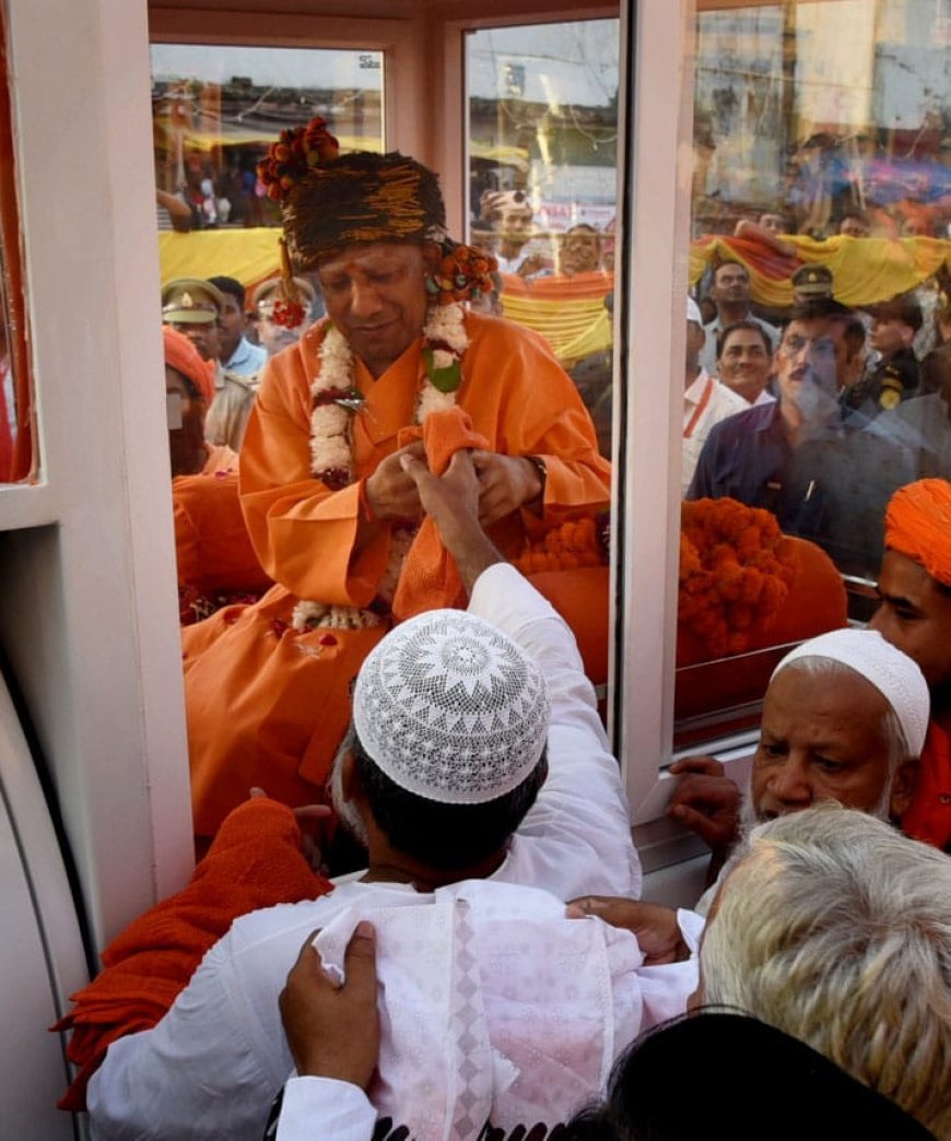 अल्पसंख्यक समाज के लोगों ने इस प्रसाद को माथे से लगाकर गोरक्षपीठाधीश्वर के प्रति कृतज्ञता जताई। चौधरी कैफुलवरा के साथ चौधरी रुकनुद्दीन, चौधरी रज़ीउद्दीन, चौधरी ज़ैद, चौधरी हाफ़िज़, अयाज़ अहमद, चौधरी अनस, नफीस आदि ने गोक्षपीठाधीश्वर का अभिनंदन किया। इस दौरान रास्ते के दोनों तरफ बने मकानों पर बड़ी संख्या में मुस्लिम महिलाएं व बच्चे अपने स्मार्ट फोन में योगी की तस्वीर खींचते रहे। चौधरी कैफुलवरा ने बताया कि उनका परिवार पीढ़ियों से गोरक्षपीठाधीश्वर की शोभायात्रा का स्वागत करता है। उन्होंने कहा कि गोरक्षपीठ मत, मजहब के विभेद से परे सभी को मानव मात्र के नजरिये से देखता है। मुस्लिम समाज की ही तरफ से बुनकर वेलफेयर एसोसिएशन के चेयरमैन अजीजुलहई के नेतृत्व में भी गोरक्षपीठाधीश्वर का अभिनंदन किया गया।