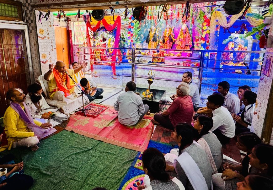वृंदावन धाम से पधारे श्रीमद् भागवत कथा व्यास कवि चंद्र दास महाराज ने श्री राम जानकी हनुमत धाम मंदिर में पहुंचकर बच्चों से कहा कि पेट पालने की विद्या के साथ भगवान से जुड़ने वाली विद्या जरूर ग्रहण करें तथा संस्कारी बनें।उन्होंने कहा कि जो वृंदावन धाम एक बार पहुंच जाता है उसको फिर बार-बार जाने की चाहत होती है। उन्होंने एक भजन 'वृंदावन जाने को जी चाहता है' सुन कर श्रद्धालुओं को भाव विभोर किया। इसके पूर्व कथा व्यास कविचन्द्र दास महाराज ने मंदिर पहुंचकर श्री बांके बिहारी व श्री राघव सरकार का माल्यार्पण कर साष्टांग प्रणाम किया।