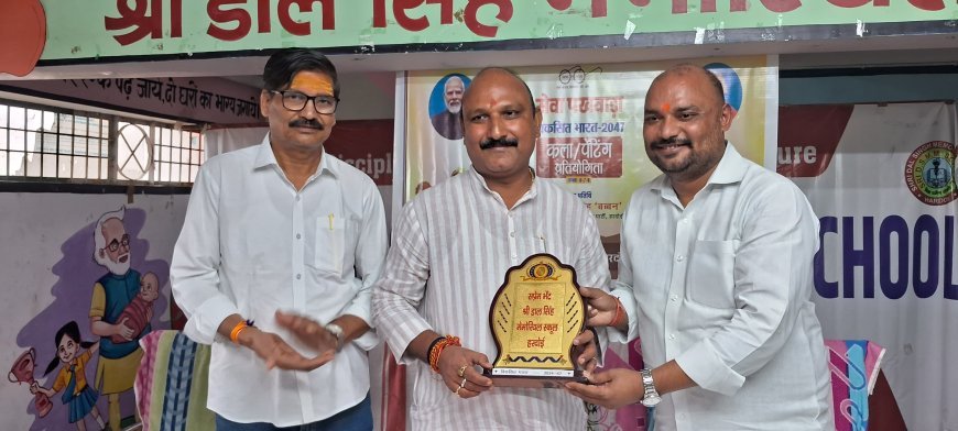 सेवा पखवाड़ा विकसित भारत 2047 के तहत श्री डालसिंह मेमोरियल स्कूल में आयोजित चित्रकला व निबंध प्रतियोगिता का परिणाम निकालने के लिए स्वयं मुख्य अतिथि जिला अध्यक्ष भाजपा ने निबन्ध कापियां और पोस्टर देखे तथा प्रथम, द्वितीय व तृतीय बच्चों का निर्णय कर पुरस्कार व प्रशस्ति पत्र देकर उनका उत्साह बढ़ाया। मंगली पुरवा फाटक स्थित श्री डालसिंह मेमोरियल स्कूल में सेवा पखवाड़ा विकसित भारत 2047 के अंतर्गत आयोजित हुई चित्रकला निबंध प्रतियोगिता में लगभग दो सैकड़ा बच्चों ने भाग लेकर चित्रों व शब्दों के माध्यम से अपने विचारों को पोस्ट पर उकेरा तथा कापी पर लिखकर नए भारत की परिकल्पना को दर्शाया।