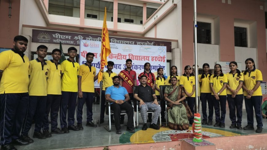 हरदोई: पी एम श्री केंद्रीय विद्यालय हरदोई ने एक अद्भुत अनुभव को अपने छात्र परिषद के अलंकरण समारोह के जरिए संजोया। सत्र 2024-25 हेतु छात्र परिषद के स्कूल स्तरीय तथा सदन स्तरीय विभिन्न पदों पर नव निर्वाचित कुल 72 नेतृत्वकर्ताओं के लिए यह दिन और समारोह अत्यंत खास था। अलंकरण समारोह की शुरुवात सभी छात्र, छात्राओं, शिक्षकों व अभिभावकों की उपस्थिति में, मां सरस्वती को साक्षी मानकर स्कूल के ध्वजारोहण के साथ हुई।