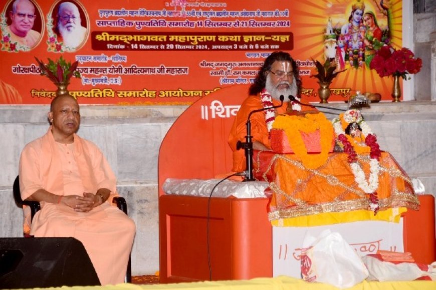 The Chief Minister shared these thoughts during the inauguration of the Shrimad Bhagwat Mahapuran Katha Gyan Yagna at Gorakhnath Temple, marking the 55th death anniversary of Yugpurush Brahmaleen Mahant Digvijaynath Ji Maharaj and the 10th death anniversary of Rashtrasant Brahmaleen Mahant Avedyanath Ji Maharaj.