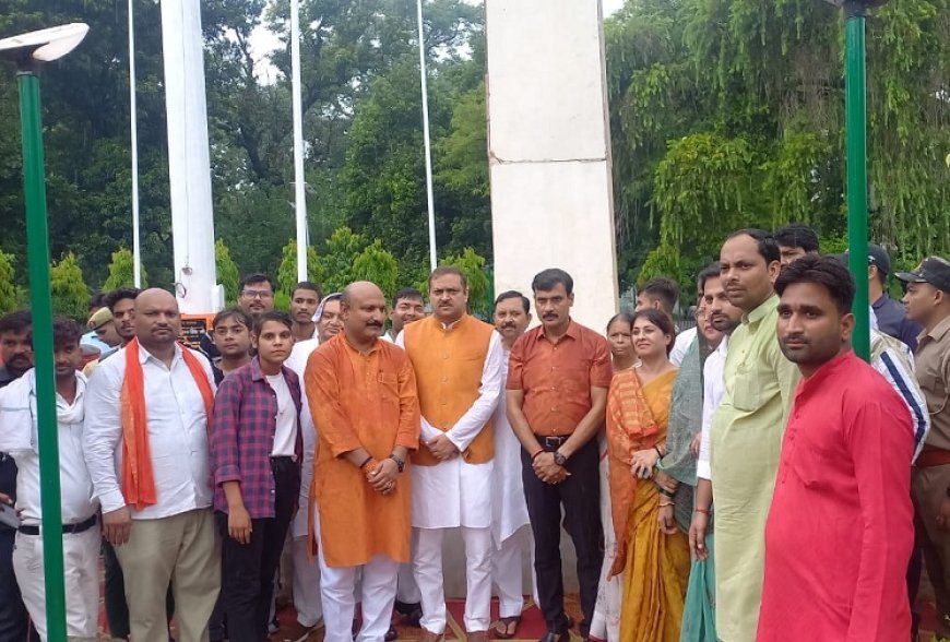 जनप्रतिनिधियों के साथ जिलाधिकारी मंगला प्रसाद सिंह ने शहीद स्मारक व अमर जवान ज्योति पर पुष्प अर्पित कर अमर सेनानियों को याद किया। उन्होंने उद्यान में स्थापित अमर शहीद चन्द्रशेखर व भगत सिंह की प्रतिमाओं पर पुष्पांजलि अर्पित की। उद्यान में यह तिरंगा सदस्य विधान परिषद अवनीश कुमार सिंह की विकास निधि से स्थापित किया गया है। विधान परिषद सदस्य ने कहा कि यह तिरंगा नई पीढ़ी में देशभक्ति की भावना को प्रबल बनाएगा।