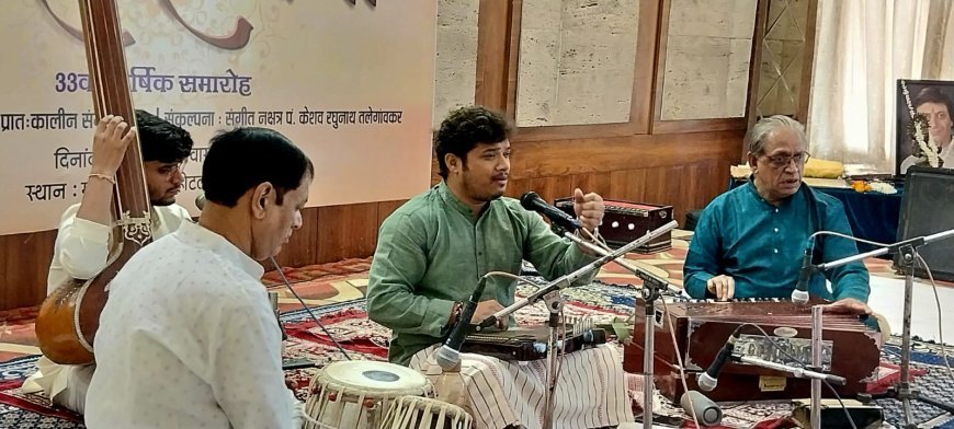 आगरा : पं. रघुनाथ तलेगांवकर फाउंडेशन ट्रस्ट और संगीत कला केंद्र, आगरा के संयुक्त तत्वावधान में आयोजित नाद साधना प्रातःकालीन सभा का 33वां वार्षिक समारोह ग्रांड होटल के मुख्य सभागार में संपन्न हुआ। यह संगीत सभा पं. रघुनाथ तलेगांवकर के जन्म शती वर्ष के उपलक्ष्य में समर्पित की गई। कार्यक्रम का शुभारंभ गणेश और मां सरस्वती के समक्ष दीप प्रज्ज्वलन के साथ हुआ। अरविंद कपूर, मोहित श्रीवास्तव, विजयपाल सिंह चौहान और अनिल वर्मा ने पं. रघुनाथ तलेगांवकर, सुलभा तलेगांवकर और संगीत नक्षत्र पं. केशव तलेगांवकर के चित्रों पर माल्यार्पण कर श्रद्धांजलि अर्पित की।