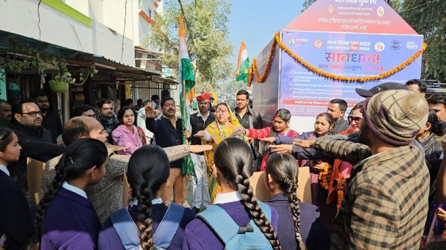 इस अवसर पर अध्यक्ष प्रेमावती ने बताया कि इस कार्यक्रम का उद्देश्य समाज मे फैली बाल विवाह जैसी कुप्रथा के प्रति जनसमुदाय को जागरूक कर बाल विवाह प्रतिषेध अधिनियम 2006 के कानूनी दुष्परिणामों से अवगत कराना है। जागरूकता रथ में आकर्षक पोस्टर, हस्ताक्षर अभियान जन–संदेश और ऑडियो प्रचार की व्यवस्था की गई है, जिनके माध्यम से ग्रामीणों को जागरूक किया जायेगा कि बाल विवाह बच्चों के अधिकारों का गंभीर हनन है। बाल विवाह से न केवल बच्चों के स्वास्थ्य और शिक्षा बल्कि उनके संपूर्ण भविष्य सहित समाज की प्रगति भी बाधित होती है। बाल विवाह को एक गंभीर सामाजिक कुरीति और कानूनी रूप से दंडनीय अपराध बताते हुए अध्यक्ष प्रेमावती ने कहा कि बाल विवाह कराना, उसमें सहयोग करना तथा उसे बढ़ावा देना अपराध की श्रेणी मे आता है। बाल विवाह से संबंधित कोई भी जानकारी मिलने पर पुलिस प्रशासन तथा सम्बन्धित विभागों को सूचित करें, जिससे समय पर कानूनी कार्रवाई की जा सके।