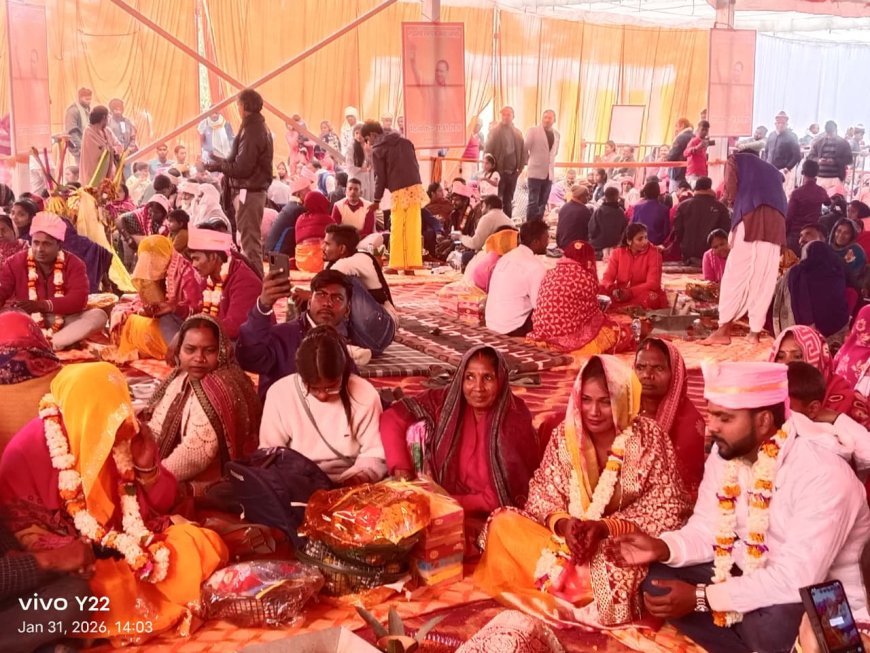 जिलाधिकारी ने बताया कि कार्यक्रम स्थल पर नाश्ता एवं लंच की समुचित व्यवस्था की गई है। साथ ही विवाह पंजीकरण के लिए अलग से काउंटर लगाए गए हैं, जहां आवश्यक पहचान पत्र के माध्यम से तत्काल विवाह पंजीकरण कराया जा रहा है। इस अवसर पर सेल्फी प्वाइंट एवं वधुओं के लिए ब्यूटी पार्लर की विशेष व्यवस्था भी की गई, जो जनपद में पहली बार की गई पहल रही। उन्होंने आमजन से अपील की कि यदि उनके गांव या मोहल्ले में कोई पात्र परिवार इस योजना से वंचित रह गया हो तो उसे अवश्य जानकारी दें, ताकि भविष्य में आयोजित होने वाले कार्यक्रमों में उन्हें भी योजना का लाभ मिल सके। साथ ही मुख्यमंत्री सामूहिक विवाह समारोह में 09 विकास खण्डों के कुल 227 जोड़े शामिल हुए। इनमें हनुमानगंज से 35, बेलहरी से 08, चिलकहर से 30, पंदह से 19, सोहांव से 08, दुबहर से 15, गड़वार से 23, रसड़ा से 48 एवं नगरा से 41 जोड़े शामिल रहे। कार्यक्रम में मुख्य विकास अधिकारी ओजस्वी राज, जिलाध्यक्ष संजय मिश्रा, पुलिस अधीक्षक ओमवीर सिंह, नारद राय, श्रीमती सुनीता श्रीवास्तव, डीडीओ आनंद प्रकाश, सिटी मजिस्ट्रेट आसाराम वर्मा सहित अन्य अधिकारीगण एवं जनप्रतिनिधि उपस्थित रहे।