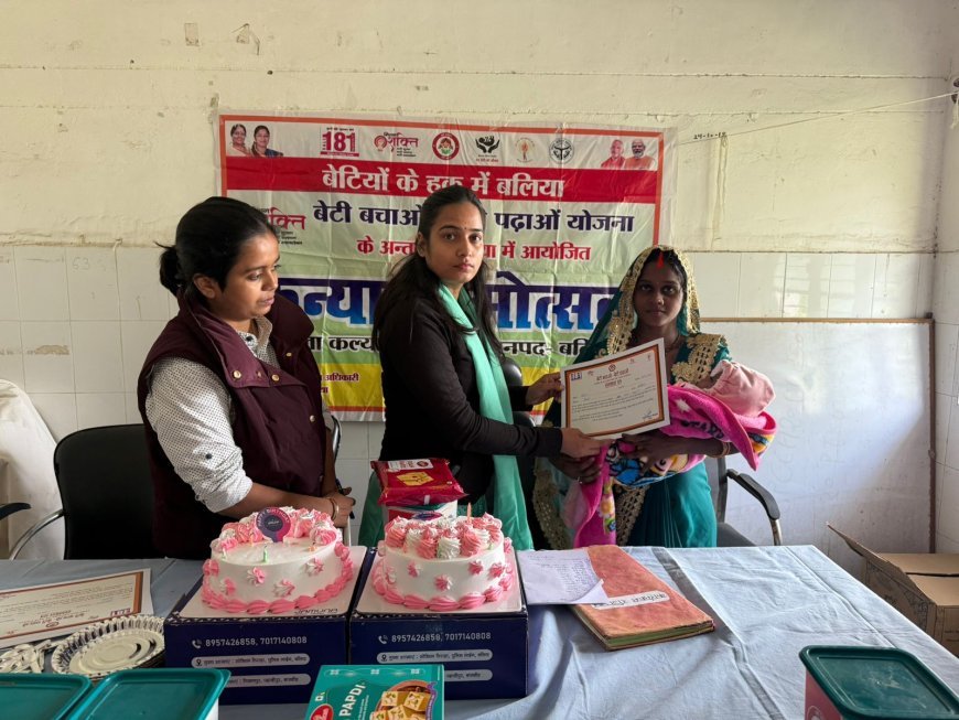 बलिया। सामुदायिक स्वास्थ्य केंद्र रेवती में मिशन शक्ति फेज-5.0 के तहत बेटी बचाओ बेटी पढ़ाओ योजना का हिस्सा बनकर कन्या जन्मोत्सव कार्यक्रम धूमधाम से मनाया गया। जिला प्रोबेशन अधिकारी अमरेंद्र कुमार पौत्स्यन के निर्देश पर आयोजित इस कार्यक्रम का मकसद नवजात बालिकाओं के जन्म को उत्सव की तरह मनाना, समाज को उनके अधिकारों के बारे में बताना और बेटी बचाओ बेटी पढ़ाओ का संदेश हर घर तक पहुंचाना था।