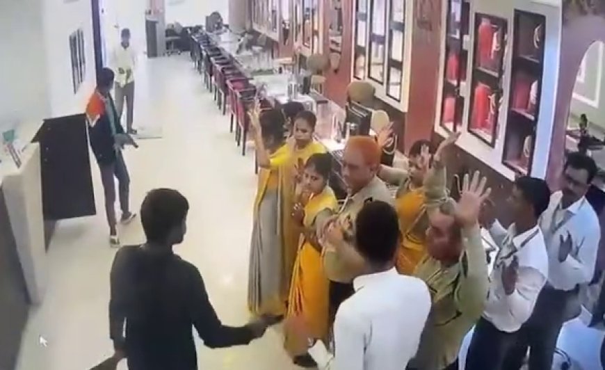 फुटेज में साफ दिखाई दे रहा है कि बदमाश दो-दो के ग्रुप में शोरूम में घुसे और अंदर जाते ही हथियार निकालकर सभी को धमकाया। उन्होंने स्टाफ को बंधक बना लिया और शोरूम में रखे सोने, चांदी और हीरे के गहनों को बैग में भरकर फरार हो गए।