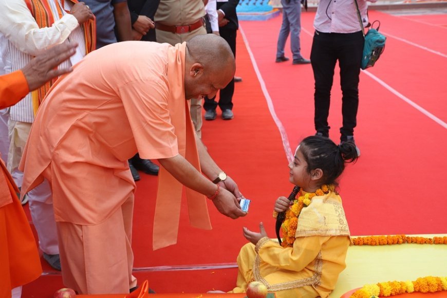 जनसभा के दौरान भगवान राम के वेश में एक बालक ने शिव स्तुति सुनाई, जिससे सीएम योगी प्रभावित हुए और उन्होंने बच्चे को चॉकलेट देकर दुलारा। उन्होंने कहा कि यह प्रतिभा हमारी विरासत को आगे बढ़ाएगी।