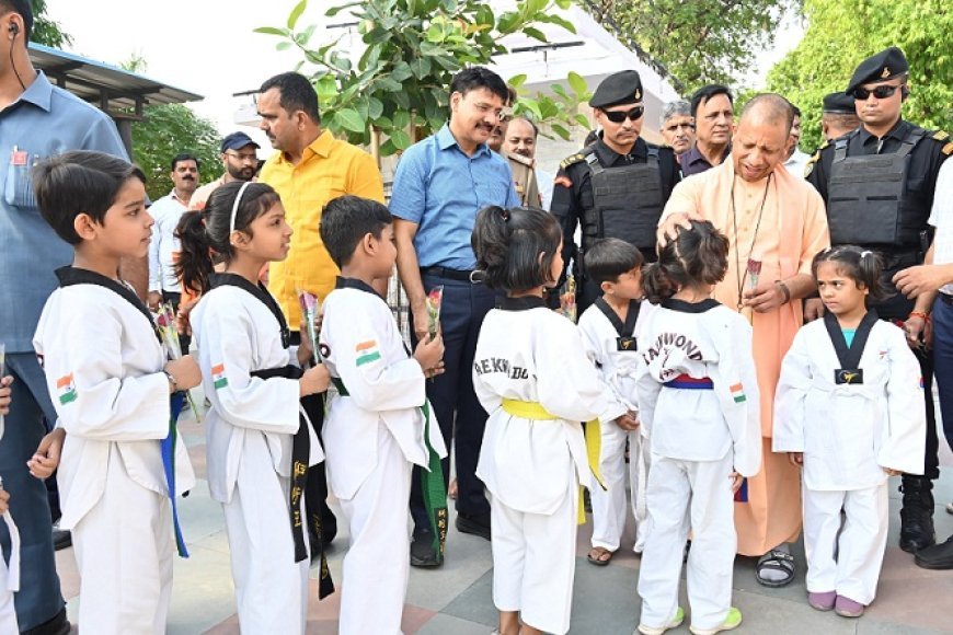 सन्यास का मार्ग चुनने के बाद ही योगी आदित्यनाथ खुद अपना जन्मदिन नहीं मनाते हैं। पर, प्रतिवर्ष उनके जन्मदिन को लेकर समाज के हर आयु वर्ग में उल्लास छाया रहता है। गुरुवार (5 जून) को उनके जन्मदिन को विविध कार्यक्रमों के बीच संगठनों और लोगों ने मनाया। इसी क्रम में शुक्रवार को मुख्यमंत्री योगी आदित्यनाथ से मिलकर उन्हें जन्मदिन की शुभकामनाएं देने के लिए मार्शल आर्ट्स सीखने वाले बच्चे भी गोरखनाथ मंदिर पहुंचे। इन बच्चों ने गुलाब का फूल और एक स्मृति चिह्न देकर सीएम को बधाई एवं शुभकामनाएं दीं। उन्होंने मुख्यमंत्री को मार्शल आर्ट्स के कुछ स्टेप्स भी दिखाए। सीएम ने बच्चों की शुभकामनाओं को बड़े ही प्यार से स्वीकार किया और उन्हें दुलारते हुए खूब आशीर्वाद दिया। उन्होंने बच्चों से उनके प्रशिक्षण और पढ़ाई को लेकर बातचीत की चॉकलेट देकर उनके साथ फोटो भी खिंचवाई।