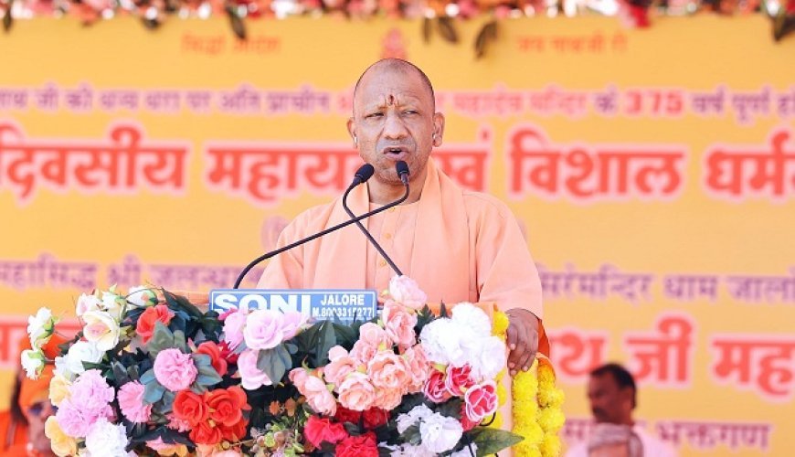 जालोर में श्री रत्नेश्वर महादेव मंदिर के 375 वर्ष पूर्ण होने पर महायज्ञ व धर्मसभा में शामिल हुए मुख्यमंत्री योगी आदित्यनाथ।