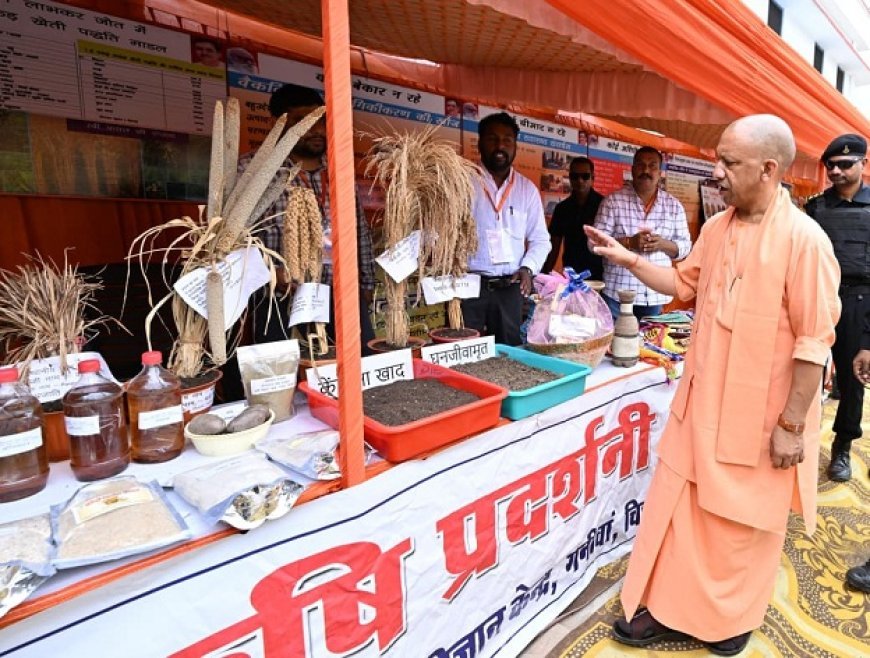 मुख्यमंत्री योगी गनीवां स्थित कृषि विज्ञान केंद्र पहुंचे जहां उन्होंने गोस्वामी तुलसीदास जी की भव्य प्रतिमा का अनावरण किया और हरिशंकरी पौधों का रोपण कर पर्यावरण संरक्षण का संदेश दिया। यहां उन्होंने कृषि विभाग द्वारा लगाए गए प्रदर्शनी स्टालों का भी अवलोकन किया। उन्होंने परमानंद आश्रम पद्धति विद्यालय में बच्चों से भेंट कर उन्हें चॉकलेट वितरित की और फोटोग्राफ भी खिंचवाए।