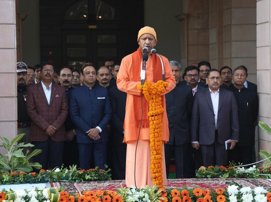 Lucknow Republic Day: सीएम ने गणतंत्र दिवस पर अपने सरकारी आवास पर फहराया तिरंगा, प्रदेशवासियों को दी शुभकामनाएं।