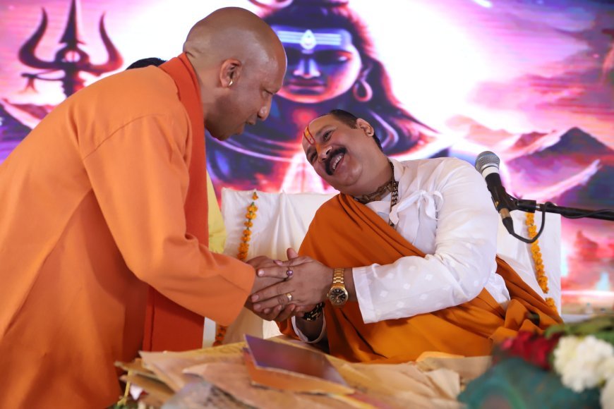 CM योगी ने प्रयागराज में पंडित प्रदीप मिश्रा की कथा में पहुंचे, सनातन धर्म की महिमा पर दिया जोर
