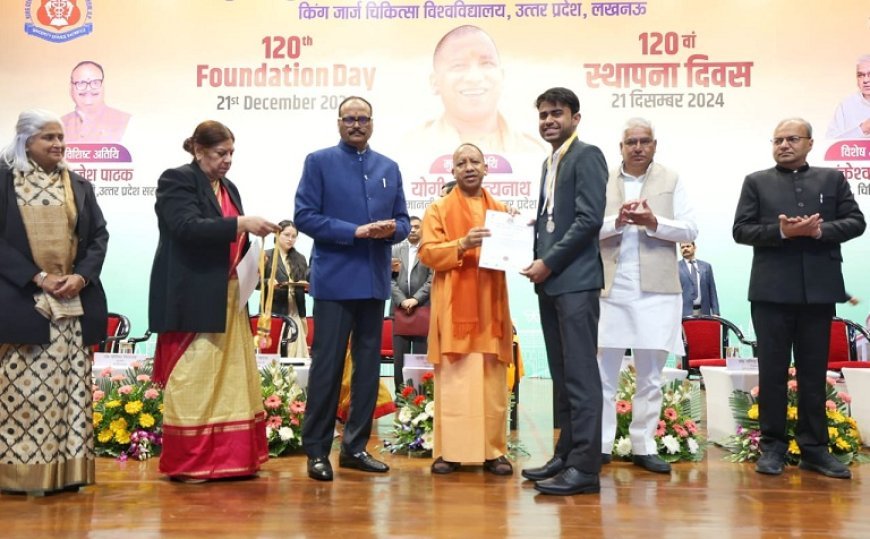 यह बातें मुख्यमंत्री योगी आदित्यनाथ ने कहीं। उन्होंने शनिवार को केजीएमयू के 120वें स्थापना दिवस समारोह में 67 मेधावी छात्रों को मेडल और सर्टिफिकेट प्रदान कर सम्मानित किया।
