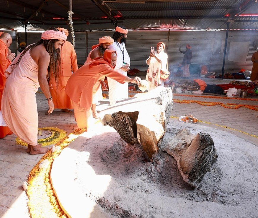 Maha Kumbh 2025: गुरु गोरक्षनाथ अखाड़ा में सीएम योगी ने की धर्म ध्वजा की पूजा, संतों को प्रसाद गृहण कराया।