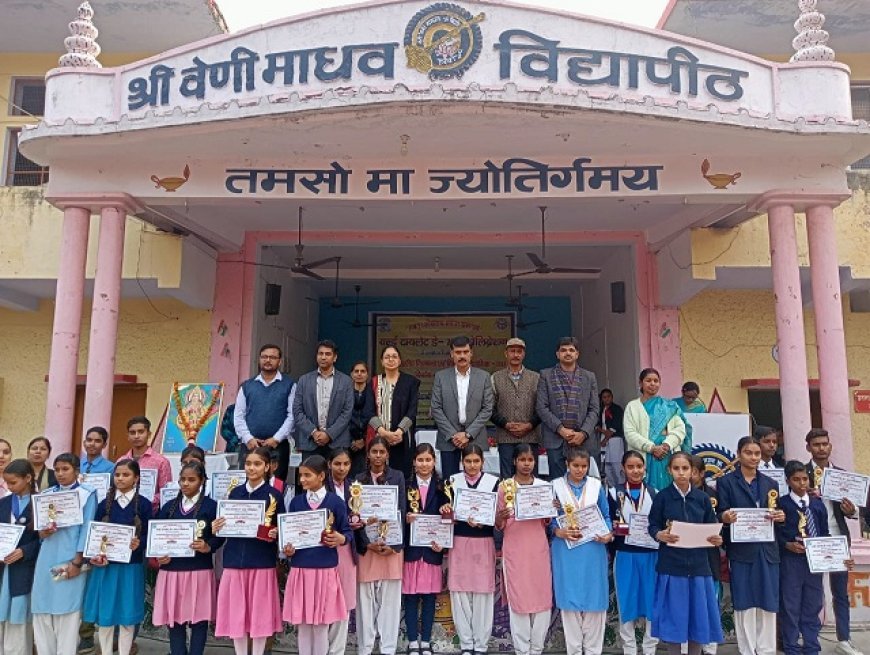 हरदोई। वेणीमाधव विद्यापीठ में वर्ल्ड टायलेट डे-2024 सेलिब्रेशन के तत्वाधान में जनपद स्तरीय चित्रकला प्रतियोगिता का आयोजन किया गया। कार्यक्रम में मुख्य अतिथि जिलाधिकारी मंगला प्रसाद सिंह व विशिष्ट अतिथि सौम्या गुरूरानी ने दीप प्रज्ज्वलित कर प्रतियोगिता का उदघाटन किया। जूनियर वर्ग में निबंध प्रतियोगिता में प्रथम स्थान वेणी माधव बालिका विद्यापीठ की छात्रा रिमांशी मिश्रा, द्वितीय स्थान एएसवीवी इंटर कॉलेज के छात्र कार्तिकेय शुक्ला तथा तृतीय स्थान वेणीमाधव इंटर कॉलेज की छात्रा नित्या ने प्राप्त किया।तीन छात्रों तान्या, नितिन कुमार बाजपेयी व साक्षी बाजपेई को सांत्वना पुरस्कार मिला।