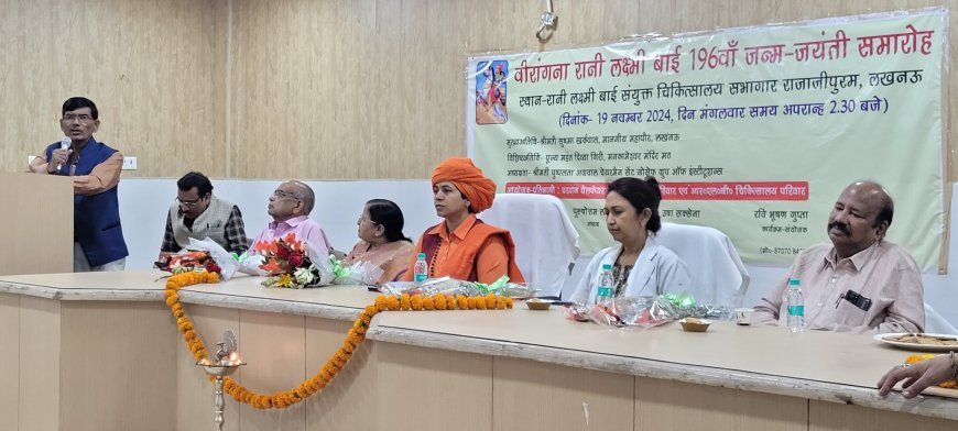 प्रथम स्वतंत्रता संग्राम की सेनानी, झाँसी की रानी "वीरांगना रानी लक्ष्मी बाई के 196 वीं जन्म जयंती" के अवसर पर एक गोष्ठी का आयोजन वीरांगना को समर्पित "रानी लक्ष्मी बाई संयुक्त चिकित्सालय राजाजीपुरम लखनऊ" के सभागार में किया गया। गोष्ठी को मुख्य अतिथि के रूप में पूज्य महंत दिव्या गिरी, मनकामेश्वर मंदिर मठ ने सम्बोधित किया तथा पुष्पलता अग्रवाल (संस्थापक अध्यक्ष संत जोसफ ग्रुप ऑफ़ इंस्टीटूशनस लखनऊ) द्वारा कार्यक्रम की अध्यक्षता की गयी। कार्यक्रम का शुभारम्भ वीरांगना की फोटो प्रतिमा पर माल्यार्पण तत्पश्चात दीप प्रज्ज्वलित कर किया। वीरांगना का विस्तृत जीवन परिचय एवं कृतित्व पर मुख्य भाषण स्का० लीडर (सेवा निवृत) राखी अग्रवाल ने दिया।