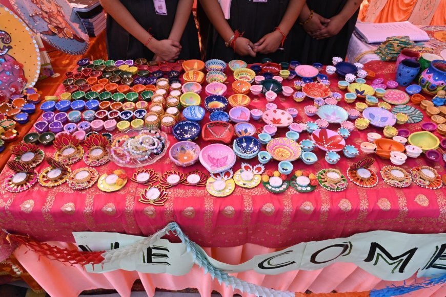 दीपावली के लिए उपयोग होने वाली सजावटी वस्तुओं, दीयों, मोमबत्तियों और झालरों से 'जगमग कलाकृति बाजार' जीवंत नजर आया। 'फ्लेवर्स ट्रीट' में बच्चों द्वारा बनाए गए व्यंजनों का आगंतुकों ने खूब आनंद लिया।