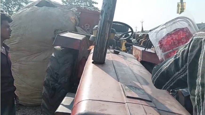 Deoband : सड़क पर पलटी उपलो से भरी ट्रॉली, लंबा जाम लगा