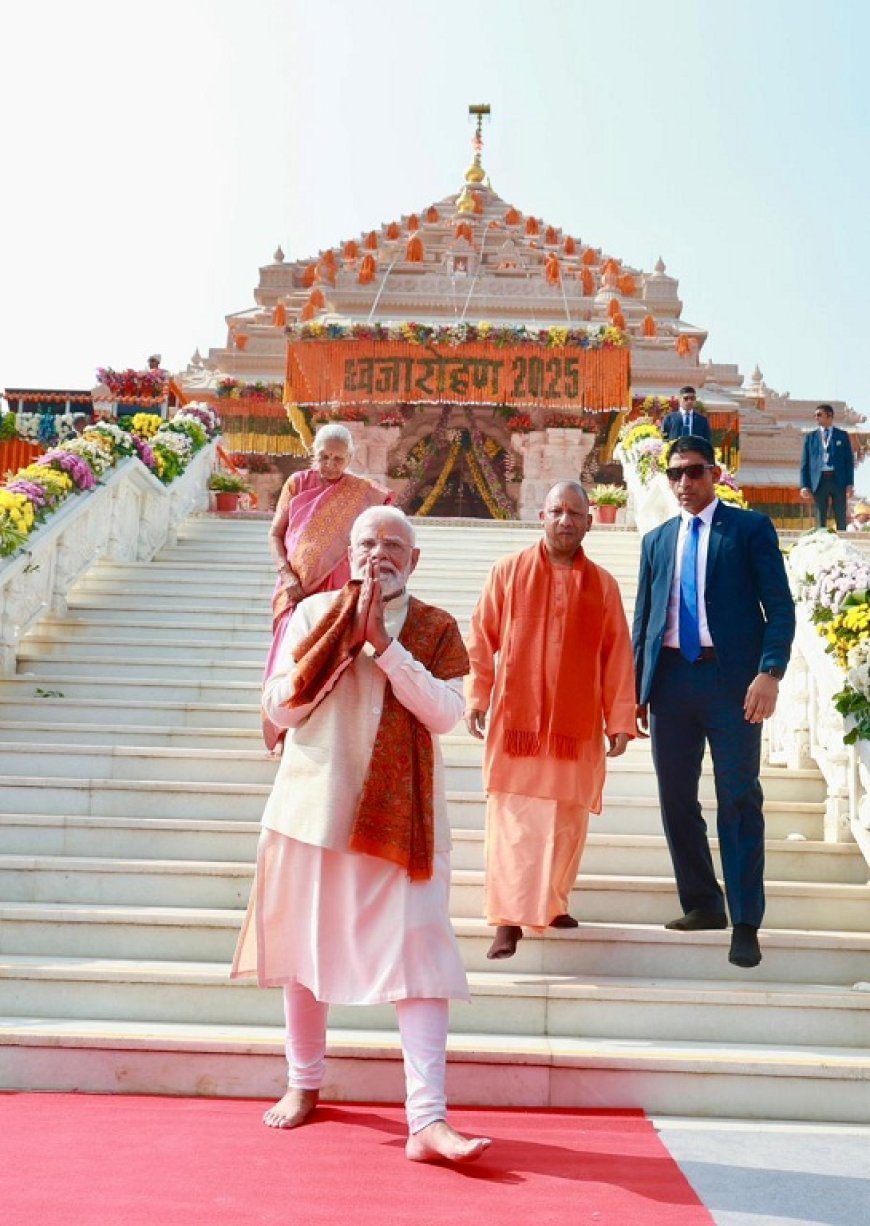 - प्रधानमंत्री एवं राष्ट्रीय स्वयंसेवक संघ के सरसंघ चालक ने अयोध्या में श्रीराम जन्मभूमि मन्दिर के शिखर पर, विधिवत मन्त्रोच्चार के साथ धर्मध्वजा का पुनर्स्थापन किया