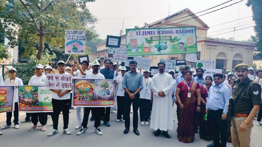 हरदोई: सेंट जेम्स स्कूल इको क्लब के बच्चों द्वारा कलेक्ट्रेट परिसर से आयोजित पर्यावरण जागरूकता रैली को जिलाधिकारी मंगला प्रसाद सिंह ने हरी झंडी दिखाकर रवाना किया। इस अवसर पर जिलाधिकारी ने कहा कि पर्यावरण का स्वच्छ बनाये रखने के लिए प्रत्येक व्यक्ति को धरा की हरियाली पर ध्यान देकर पेड़ लगाना चाहिए।