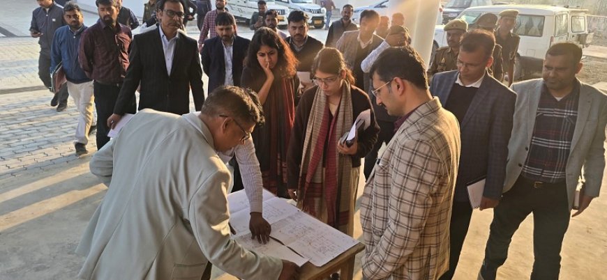 इसके पश्चात मण्डलायुक्त ने निर्माणाधीन भवन के लेआउट का अवलोकन करते हुए कक्षाओं, स्टोर रूम एवं कार्यालयों की स्थिति के संबंध में जानकारी प्राप्त की। उपस्थित अधिकारियों द्वारा अवगत कराया गया कि भवन में आवश्यक संख्या में क्लासरूम, स्टोर एवं प्रशासनिक कार्यालयों का निर्माण किया गया है तथा समस्त निर्माण कार्य आगामी 31 मार्च 2026 तक पूर्ण कर लिए जाएंगे।
