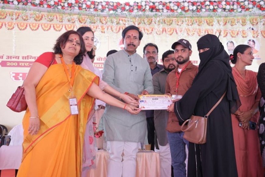 लखनऊ। योगी सरकार की जनकल्याणकारी योजनाओं के प्रभावी क्रियान्वयन का एक उत्कृष्ट उदाहरण मंगलवार को लखनऊ में देखने को मिला, जब उत्तर प्रदेश भवन एवं अन्य सन्निर्माण कर्मकार कल्याण बोर्ड द्वारा “कन्या विवाह सहायता योजना” के अंतर्गत लखनऊ मंडल का भव्य सामूहिक विवाह कार्यक्रम आयोजित किया गया। अवध शिल्पग्राम में आयोजित इस कार्यक्रम में लखनऊ, उन्नाव, सीतापुर, लखीमपुर खीरी, रायबरेली और हरदोई जनपदों के कुल 187 जोड़ों (176 हिन्दू एवं 11 मुस्लिम) का विधिवत विवाह सम्पन्न कराया गया।