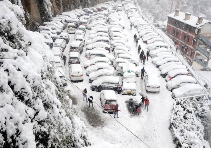 शिमला में ताजा बर्फबारी के साथ पर्यटकों की भारी भीड़, शहर पहुंचने वाले मार्गों पर लंबे ट्रैफिक जाम से बढ़ा दबाव।