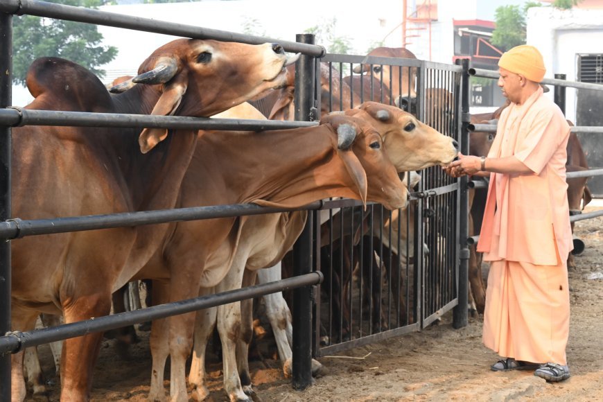 गोरखनाथ मंदिर प्रवास के दौरान शुक्रवार सुबह सीएम योगी की दिनचर्या परंपरागत रही। उन्होंने प्रातःकाल गोरखनाथ मंदिर में गुरु गोरखनाथ का दर्शन-पूजन किया और अपने गुरु ब्रह्मलीन महंत अवेद्यनाथ की समाधि स्थल पर जाकर मत्था टेका। सीएम योगी जब भी गोरखनाथ मंदिर में होते हैं तो गोसेवा उनकी दिनचर्या का अभिन्न हिस्सा रहती है। शुक्रवार सुबह वह मंदिर परिसर का भ्रमण करते हुए मंदिर की गोशाला में पहुंचे और वहां कुछ समय व्यतीत किया। गोशाला में सीएम योगी ने चारों तरफ भ्रमण करते हुए श्यामा, गौरी, गंगा, भोला आदि नामों से गोवंश को पुकारा। उनकी आवाज इन गोवंश के लिए जानी पहचानी है। प्यार भरी पुकार सुनते ही कई गोवंश दौड़ते-मचलते हुए उनके पास आ गए। मुख्यमंत्री योगी आदित्यनाथ ने सभी के माथे पर हाथ फेरा, उन्हें खूब दुलारा और अपने हाथों से उन्हें गुड़ खिलाया।