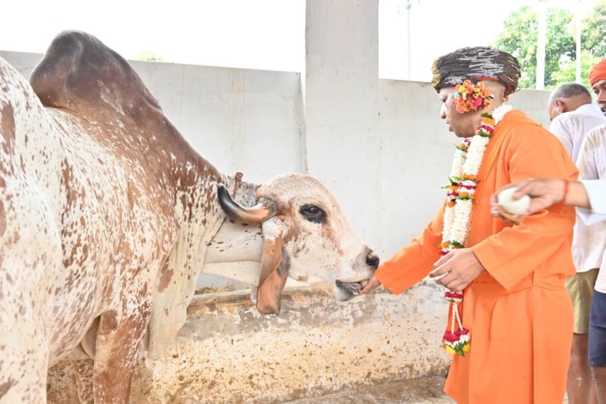 गोमाता के माथे पर तिलक लगाकर उनका आशीर्वाद लिया। पूजनोपरांत मुख्यमंत्री ने गोमाता को प्रेम और श्रद्धाभाव से गुड़, पूड़ी और चावल का लड्डू खिलाकर उनकी सेवा की।