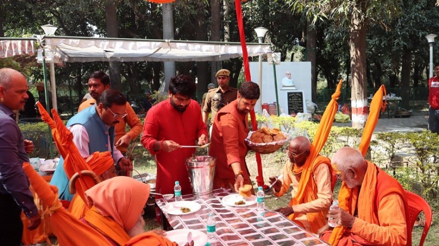 अनुष्ठान के उपरांत जिलाधिकारी ने पुलिस अधीक्षक अशोक कुमार मीणा, मुख्य विकास अधिकारी सान्या छावड़ा, अपर जिलाधिकारी (न्यायिक) प्रफुल्ल कुमार त्रिपाठी तथा नगर मजिस्ट्रेट सुनील कुमार त्रिवेदी सहित अन्य अधिकारियों के साथ आयोजित विशाल भंडारे में संतों, अधिकारियों-कर्मचारियों, पुलिस व होमगार्ड जवानों को पूड़ी, सब्जी और मिष्ठान का वितरण किया।