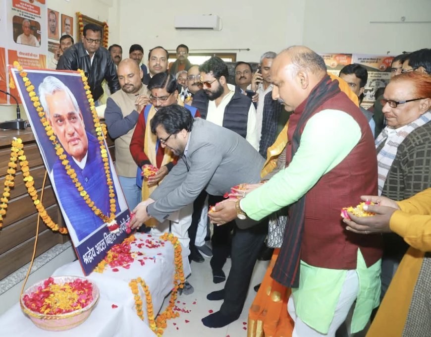 भारतीय जनता पार्टी के जिला कार्यालय सहित जनपद के सभी बूथों और मंडलों पर बुधवार को सुशासन दिवस के रूप में भारत रत्न पूर्व प्रधानमंत्री अटल बिहारी वाजपेई की 100वीं जयंती मनाई गई। भाजपा कार्यालय पर अटल जी के जीवन पर आयोजित प्रदर्शनी का उदघाटन कर राज्यमंत्री स्वतंत्र प्रभार नितिन अग्रवाल ने देश के प्रति उनके समर्पण को याद कर चित्र पर पुष्प अर्पित कर श्रद्धांजलि दी। इस अवसर पर आबकारी मंत्री नितिन अग्रवाल ने भारत रत्न पूर्व प्रधानमंत्री स्वर्गीय अटल बिहारी वाजपेयी की 100वीं जयंती पर कहा कि अटलजी ने सदैव देशहित को सर्वोपरि रखा।