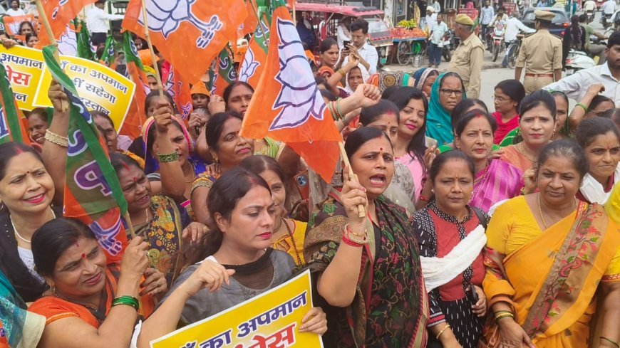 - भाजपा महिला मोर्चा की जिलाध्यक्ष अलका गुप्ता के नेतृत्व में सैकड़ों महिलाओं ने कांग्रेस कार्यालय पर किया प्रदर्शन।