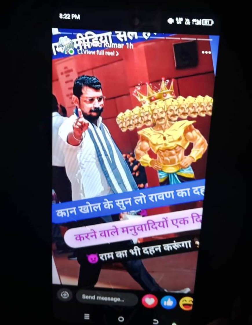 अरवल। थाना क्षेत्र के गांव निवासी युवक द्वारा हिंदू देवी देवताओं के विरुद्ध अभद्र टिप्पणी करने के मामले में बजरंग दल के कार्यकर्ताओं द्वारा थाना अरवल में मुकदमा दर्ज कराया गया। प्राप्त जानकारी के अनुसार प्रमोद पुत्र बाबू निवासी ग्राम मंसूरपुर द्वारा बीती रात फेसबुक पर भीम आर्मी प्रमुख चंद्रशेखर रावण की फोटो लगाकर हिंदू देवी देवताओं के विरुद्ध अभद्र टिप्पणी की गई थी।