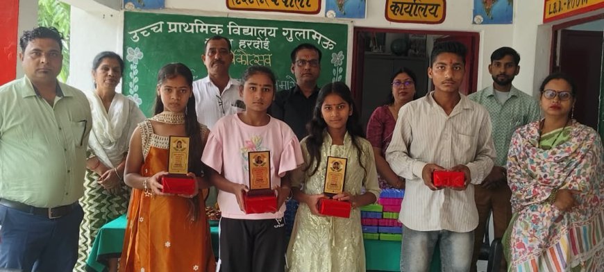 Hardoi : उच्च प्राथमिक विद्यालय गुलामऊ में कक्षा 8 के छात्र-छात्राओं का भावुक विदाई समारोह
