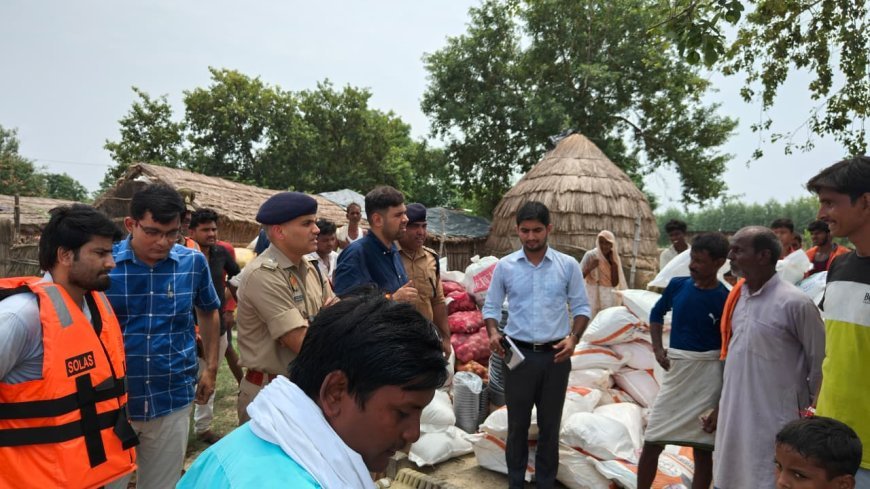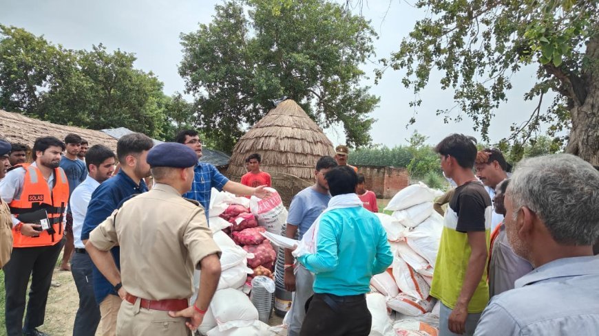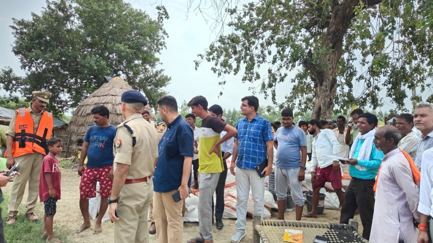 Hardoi : बाढ़ राहत कार्य- जिलाधिकारी और पुलिस अधीक्षक ने पीड़ितों को बांटी सामग्री